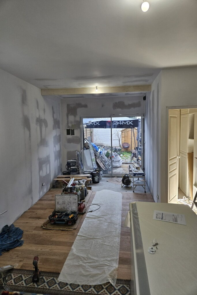 Dans les maisons en brique rouge typiques de Ronchin, Wattignies, Sainghin-en-Mélantois ou Templemars, l’isolation de jonction entre l’existant et l’extension est une étape critique. Elle se fait mieux par temps sec. Une extension démarrée en hiver imposera souvent de reprendre certains travaux d’isolation en surface après la période de gel — à prévoir dans le planning.